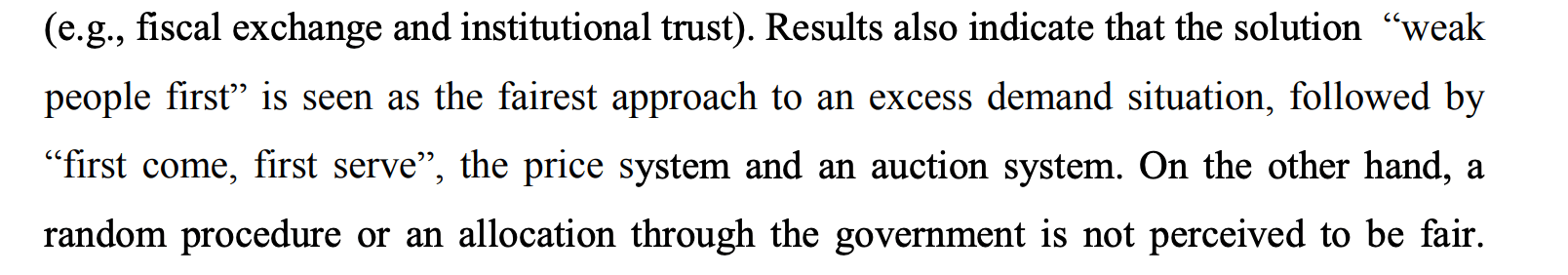 Come singoli umani, siamo affetti da bias, siamo limitati. Secondo vari studi infatti, consideriamo maggiormente accettabile il criterio del “chi arriva prima” rispetto a criteri più equi, come un’estrazione casuale, oppure un’asta.