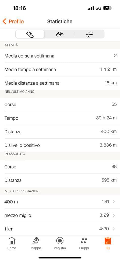 I dati? Questa settimana ho guardato il mio account Strava (qui il mio profilo), dove ho registrato la maggior parte delle attività sportive.
